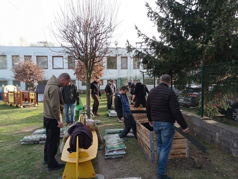 Budovanie vyvýšených záhonov.