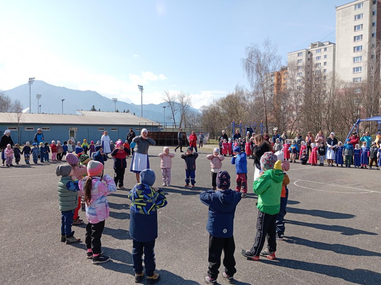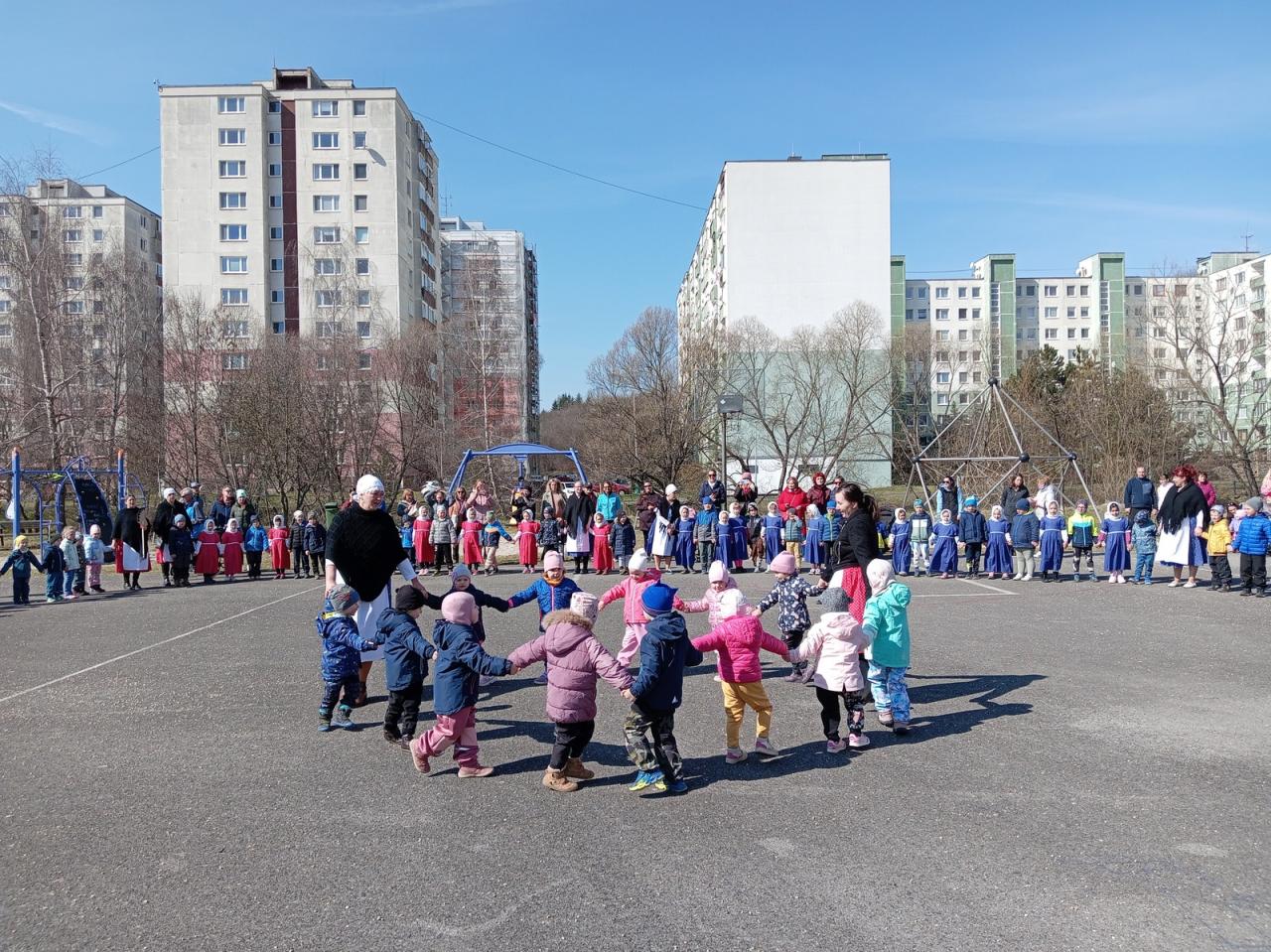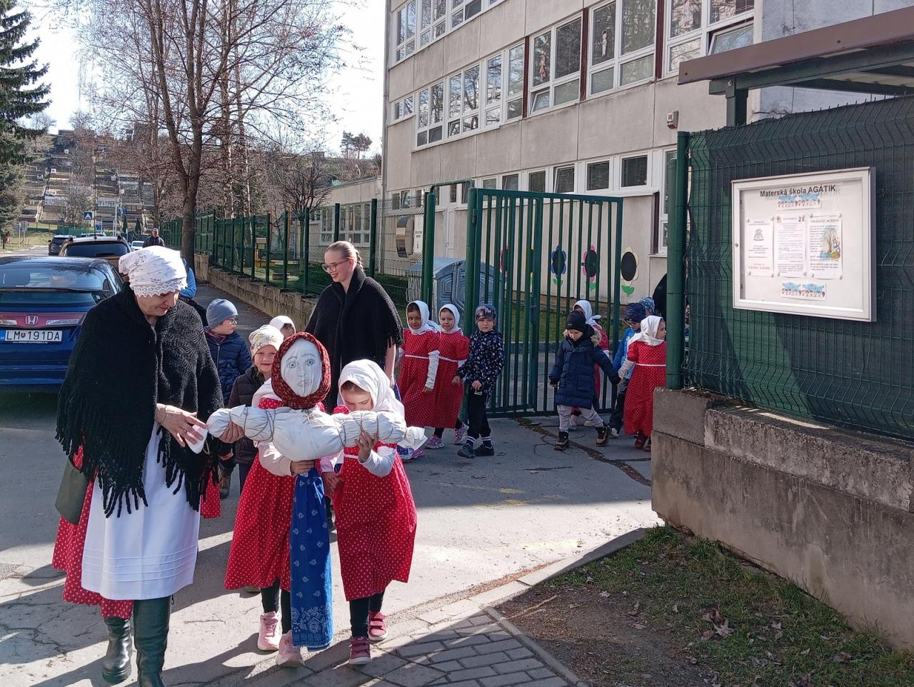 Dnes si deti a zamestnanci našej MŠ pripomenuli jeden z ľudových zvykov, ktorý sa zachoval do dnešných čias - Vynášanie Moreny. Vyjadruje túžbu ľudí skoncovať s chladným počasím a privolať teplé lúče slnka. A tak sme sa spevom, tancom a hrami rozlúčili so zimou a privítali jar...