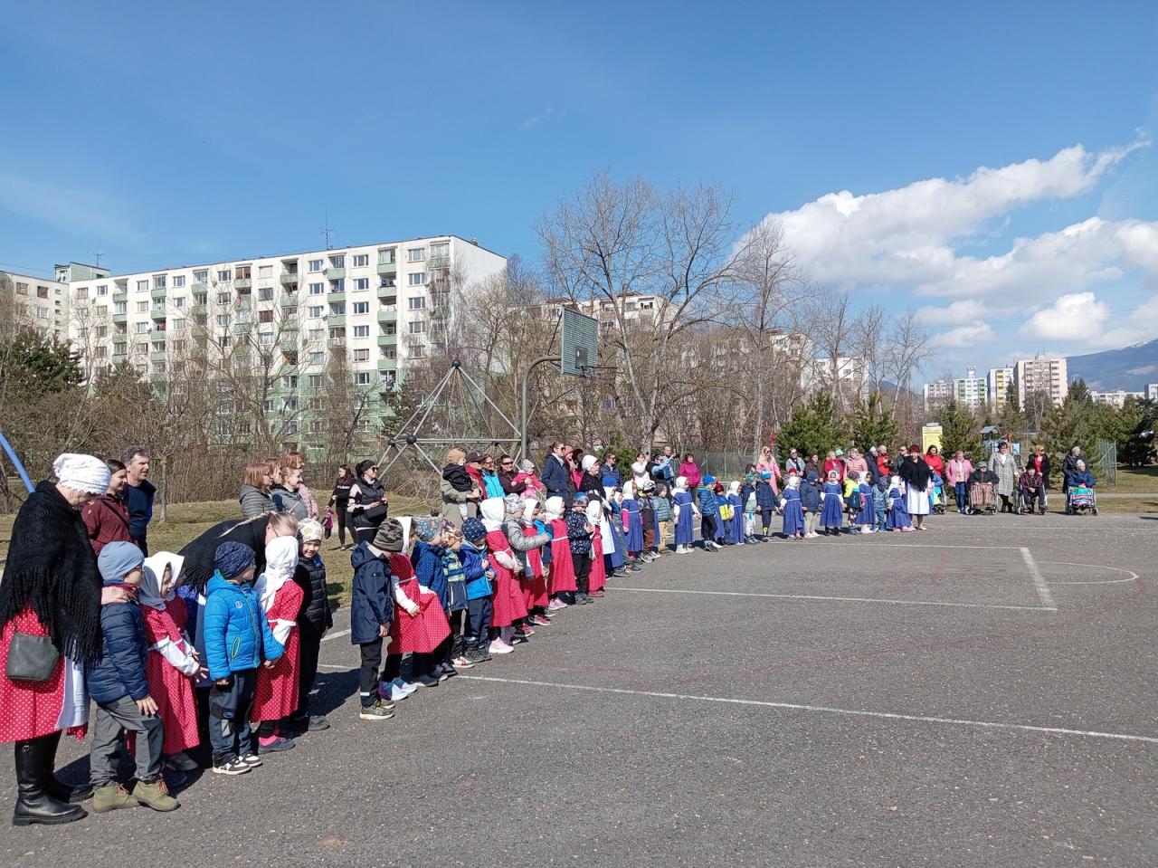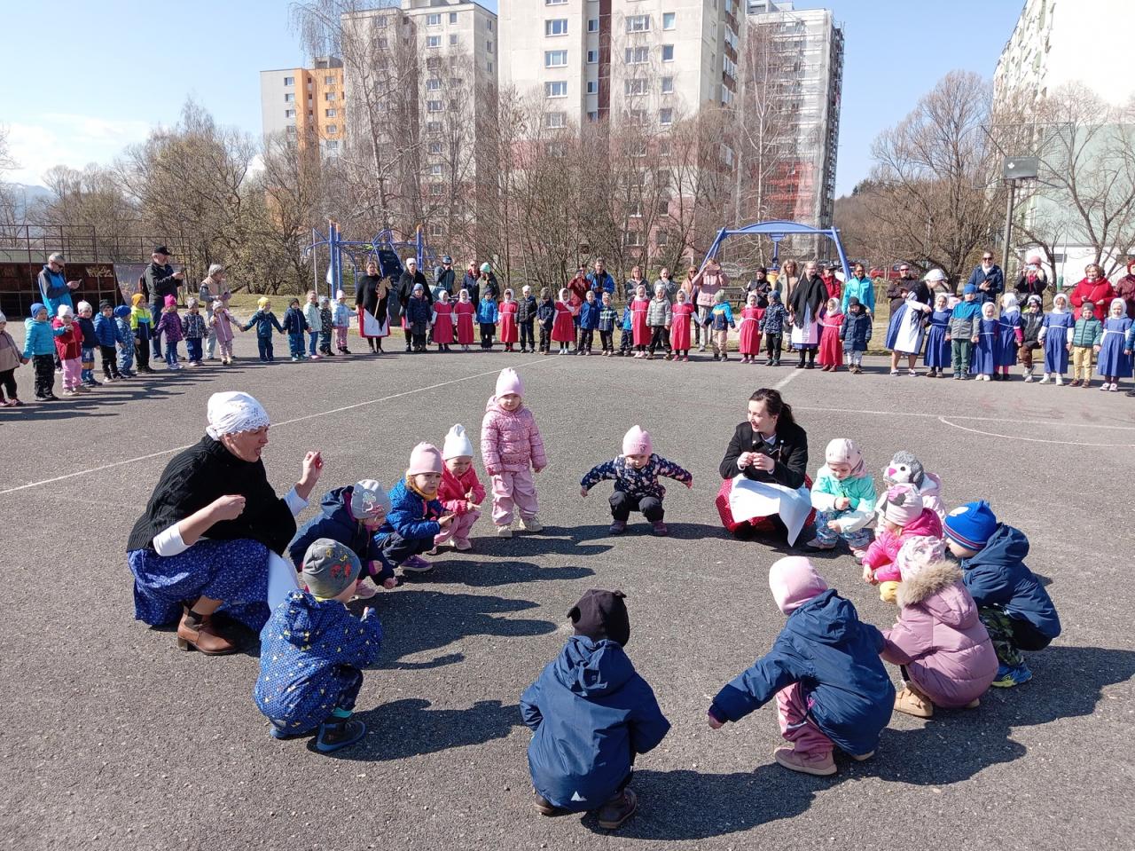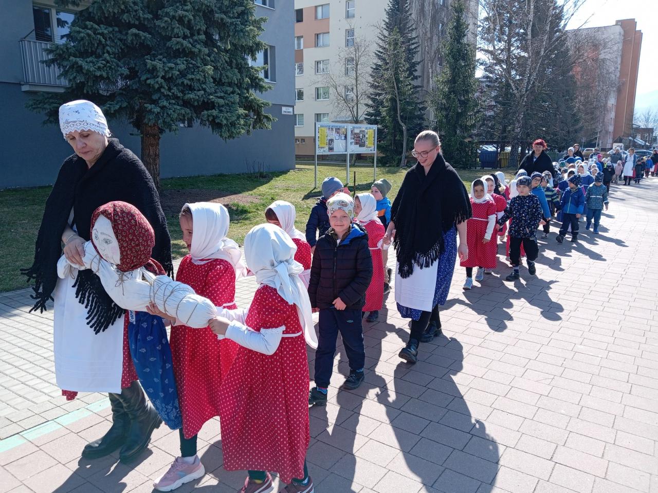 Dnes si deti a zamestnanci našej MŠ pripomenuli jeden z ľudových zvykov, ktorý sa zachoval do dnešných čias - Vynášanie Moreny. Vyjadruje túžbu ľudí skoncovať s chladným počasím a privolať teplé lúče slnka. A tak sme sa spevom, tancom a hrami rozlúčili so zimou a privítali jar...