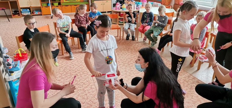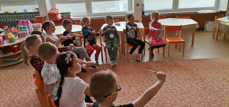 Zúbky, zúbky, čisté zrazu mám, zúbky zvládam umývať si sám. Od pondelka až do nedele, zúbky nech sú zdravé veselé.