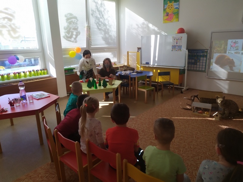 Raz zvieratká ráno vstali, preveľmi sa čudovali. Stratila sa lúčka zelená, prikryla ju biela perina. Čo budeme jesť, kto naplní krmelec? Zvieratká už teraz vedia, že pomôžu dobrí ľudia.