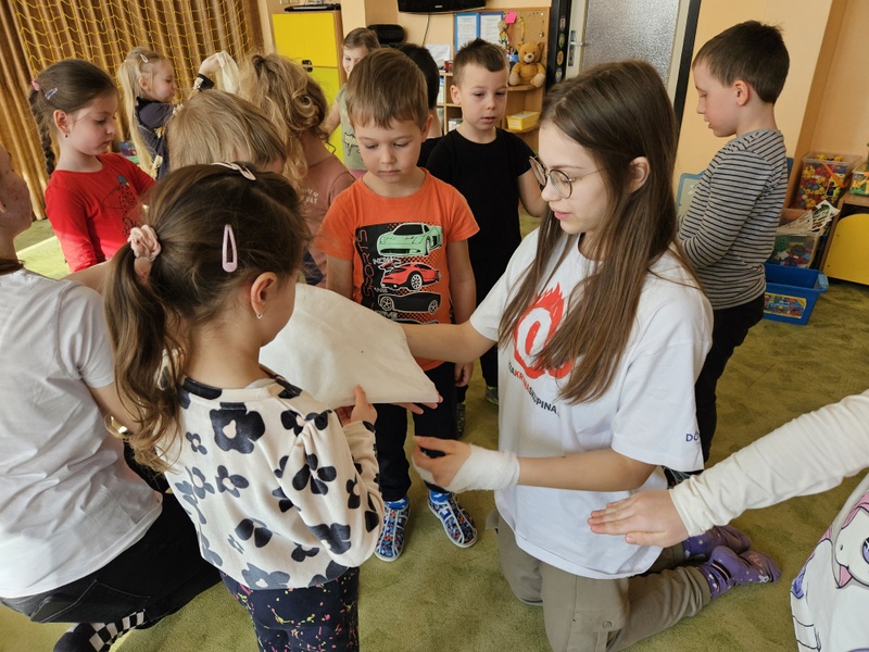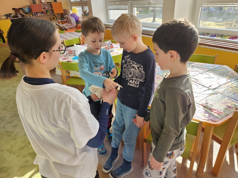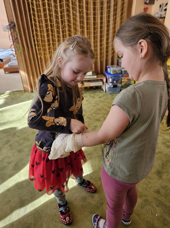 Dievčatá zo SČK prišli deťom porozprávať,ako si Dorotka popálila ruku.Vyskúšali si, ako podať prvú pomoc a čo robiť,aby sme predišli úrazom...