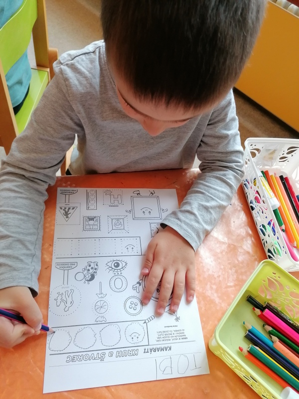 Prezradím vám ja som kruh, tento štvorec je môj druh. Aj trojuholník prišiel k nám, veľmi rád mu ruku dám.