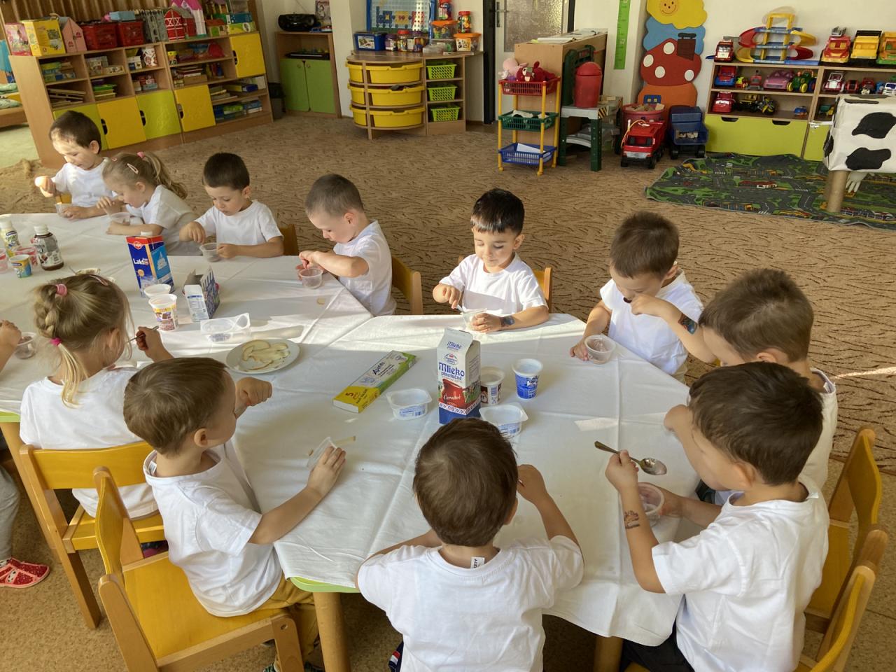 Mliečko, mliečko, to je veda, bez mliečka sa vyrásť nedá. Ponúknem ho všetkým vám, veľa zdravia zaželám.